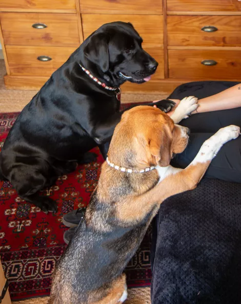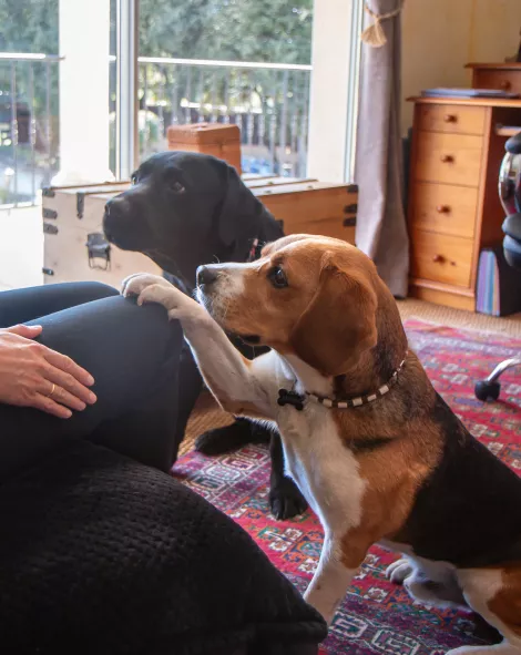 Que vous soyez adulte, adolescent ou enfant, je vous reçois à mon domicile sur rendez-vous, dans un cadre chaleureux. Mes deux chiens, Eden (labrador) et Gaspard (beagle), peuvent également assister à la séance si vous le souhaitez.