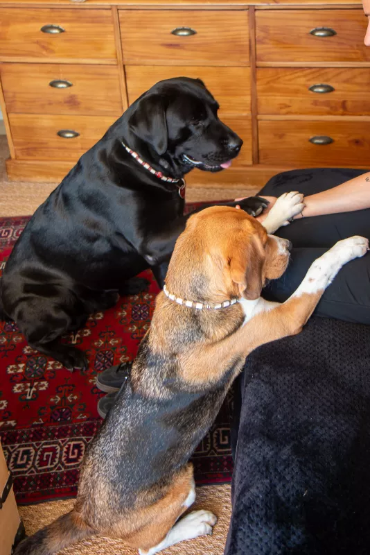 Que vous soyez adulte, adolescent ou enfant, je vous reçois à mon domicile sur rendez-vous, dans un cadre chaleureux. Mes deux chiens, Eden (labrador) et Gaspard (beagle), peuvent également assister à la séance si vous le souhaitez.